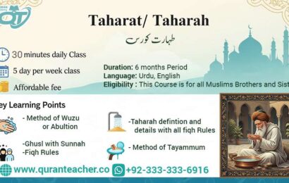 To learn Islamic Concept of Taharat/ Taharah Online Quran Teachers Academy is will teach Sharia prescribed inctructions to stay clean. In this course, You will get to know the method & excellences of Taharat. Syllabus In this you can learn following…. Purity Definition Method of Ablution Statement of Water Problims…